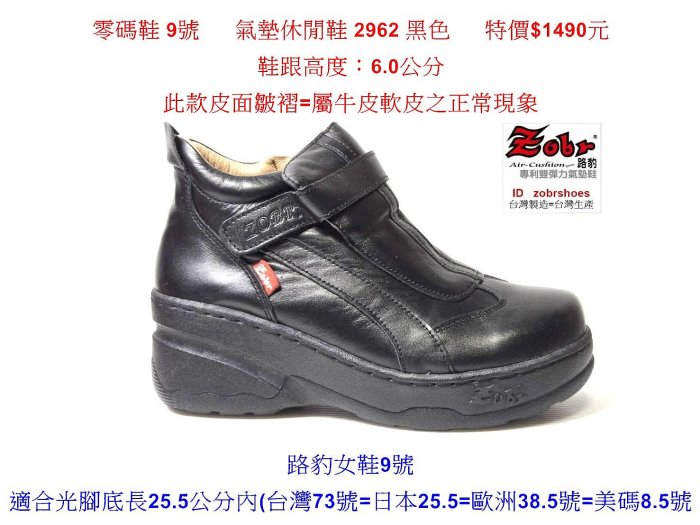 優寶購物《ubao.Tw》特貨品商城,黑貓宅配,取貨付款,零碼鞋 9號 Zobr路豹牛皮氣墊休閒鞋 2962 黑色 特價$1490元 2系列 鞋跟高度:6公分 | Yahoo拍賣