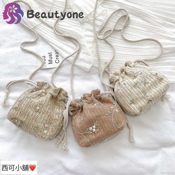 優寶購物《ubao.Tw》特貨品商城,黑貓宅配,取貨付款,編織包包女包 時尚蕾絲百搭ins抽繩水桶單肩斜挎草編-西可小鋪❤️ | Yahoo拍賣