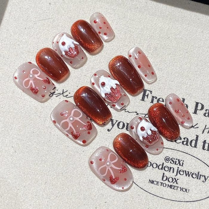 優寶購物《ubao.Tw》特貨品商城,黑貓宅配,取貨付款,新上架 【瑞卡曼草莓蛋糕】純手工穿戴甲高級紅色愛心貓眼冰淇淋蝴蝶結滿599免運 | Yahoo拍賣