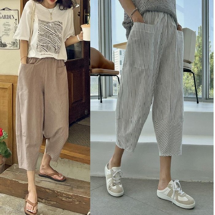 優寶購物《ubao.Tw》特貨品商城,黑貓宅配,取貨付款,Forever Kids 正韓 韓國熱銷 休閒寬鬆 直條紋鬆緊腰 垮褲 八分褲【T67298】韓國代購 | Yahoo拍賣