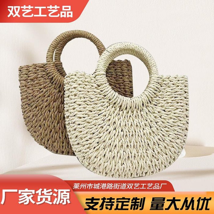 優寶購物《ubao.Tw》特貨品商城,黑貓宅配,取貨付款,快速出貨 批發現貨批發手工草編包雙色紙繩包休閑手拎包沙灘包半圓形編織包 | Yahoo拍賣