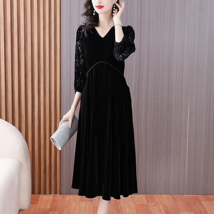 優寶購物《ubao.Tw》特貨品商城,黑貓宅配,取貨付款,快速出貨 批發新中式復古黑色絲絨連衣裙女2023秋季新款簡約時尚氣質內搭打底裙 | Yahoo拍賣