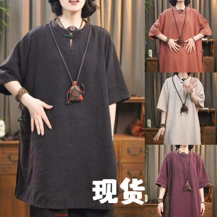 優寶購物《ubao.Tw》特貨品商城,黑貓宅配,取貨付款,大碼棉麻 舒適 洋裝【】棉麻夏季新款簡易風文藝復古套頭襯衫上衣寬松闊版小衫 | Yahoo拍賣