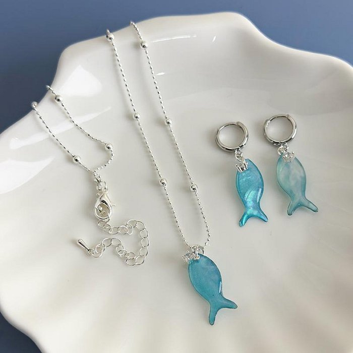 優寶購物《ubao.Tw》特貨品商城,黑貓宅配,取貨付款,{菲兒韓國飾品} C4704 韓國直送(正韓) 氣質甜美渡假風藍色炫彩小魚耳扣耳環/項鍊(二款) | Yahoo拍賣
