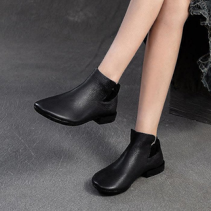 優寶購物《ubao.Tw》特貨品商城,黑貓宅配,取貨付款,100%原廠新貨新款24秋冬新款軟面頭層牛皮休閒舒適通勤短靴復古簡約女鞋 | Yahoo拍賣