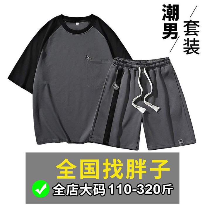 優寶購物《ubao.Tw》特貨品商城,黑貓宅配,取貨付款,超大碼~大碼男士短袖t恤冰絲夏季套裝男夏天一套潮短褲加肥加大胖子痞帥 | Yahoo拍賣