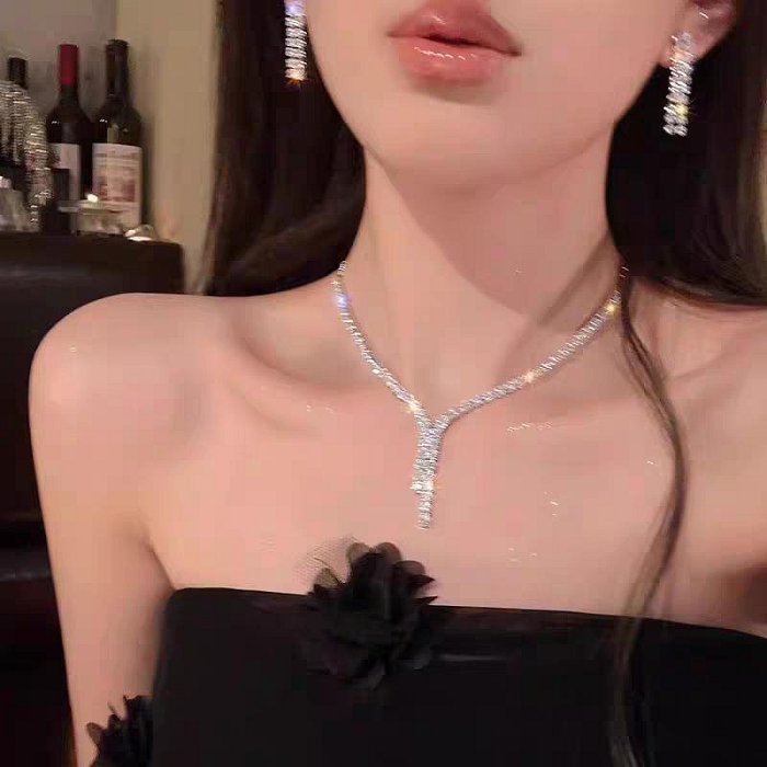 優寶購物《ubao.Tw》特貨品商城,黑貓宅配,取貨付款,平價優惠cp值高 高級感水鑽Y字短鏈項鍊送耳環 兩件組 洋裝 渡假 禮服 party 主持人 | Yahoo拍賣