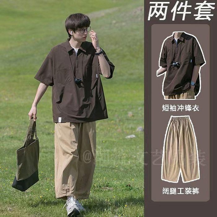 優寶購物《ubao.Tw》特貨品商城,黑貓宅配,取貨付款,短袖工裝襯衫套裝男 POLO衫 大學T 夏天薄款潮牌顯瘦寬鬆休閒T恤上衣 男生黑色衣服三件套裝【滿299元發貨】 | Yahoo拍賣