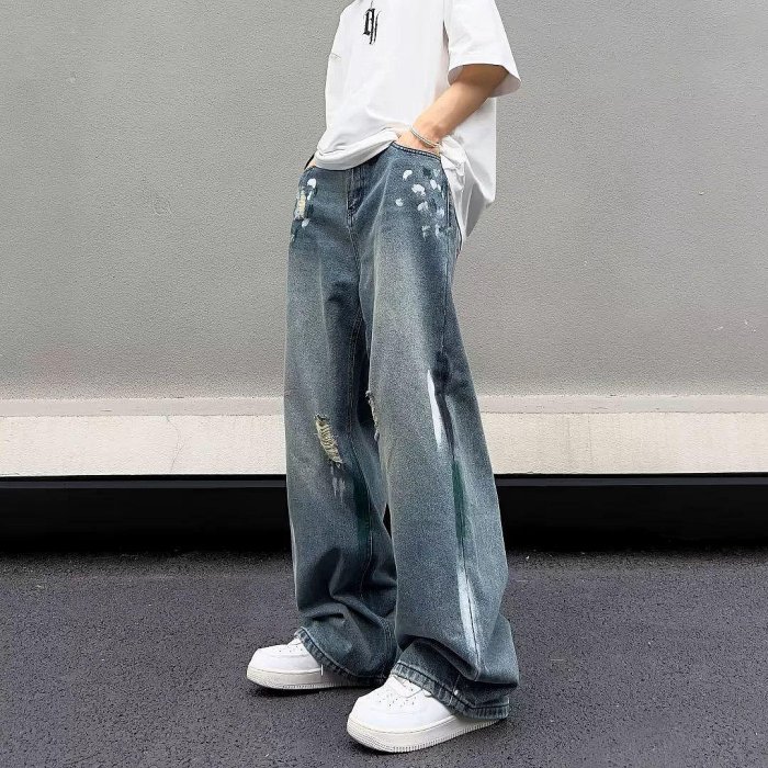 優寶購物《ubao.Tw》特貨品商城,黑貓宅配,取貨付款,水洗破洞牛仔褲男秋季設計感小眾寬松闊腿直筒拖地褲美式vibe褲子 | Yahoo拍賣