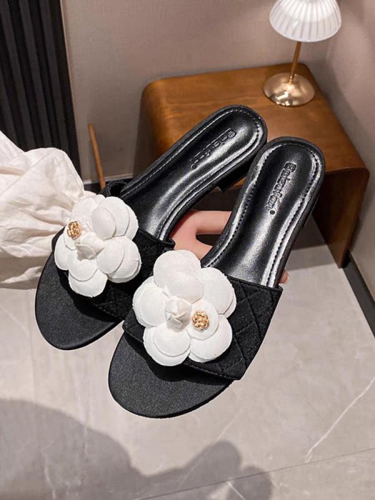 優寶購物《ubao.Tw》特貨品商城,黑貓宅配,取貨付款,大朵立體山茶花小香風全羊皮平底鞋拖鞋涼鞋寬版一字 | Yahoo拍賣