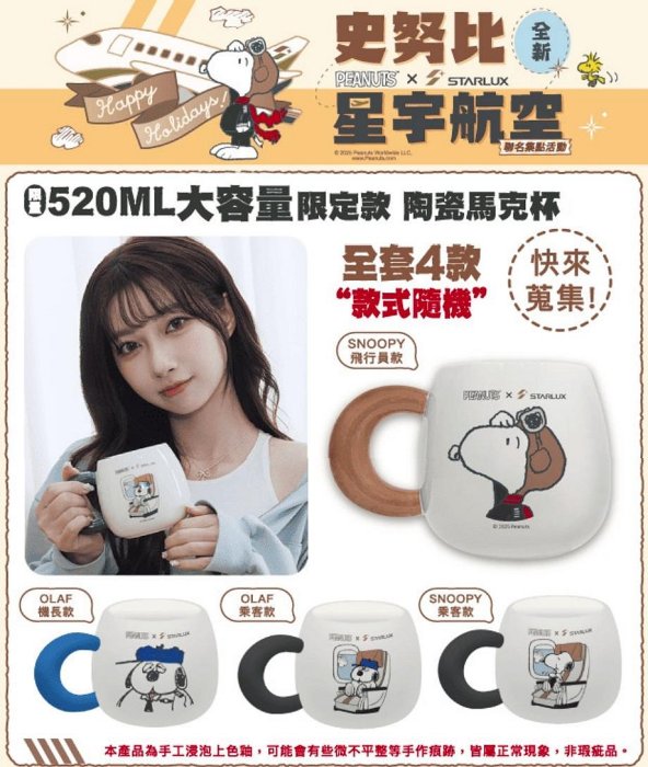 優寶購物《ubao.Tw》特貨品商城,黑貓宅配,取貨付款,7-11 2025史努比星宇航空聯名 520ML大容量限定款 陶瓷馬克杯 | Yahoo拍賣