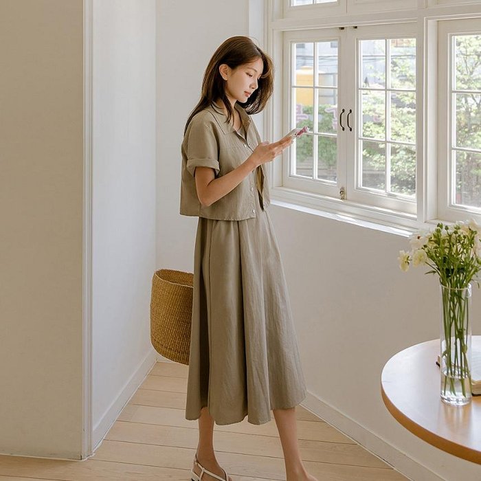 優寶購物《ubao.Tw》特貨品商城,黑貓宅配,取貨付款,Bellee 正韓 清涼圓領腰鬆緊背心洋裝+外套套裝 (2色)【0625-25】 | Yahoo拍賣