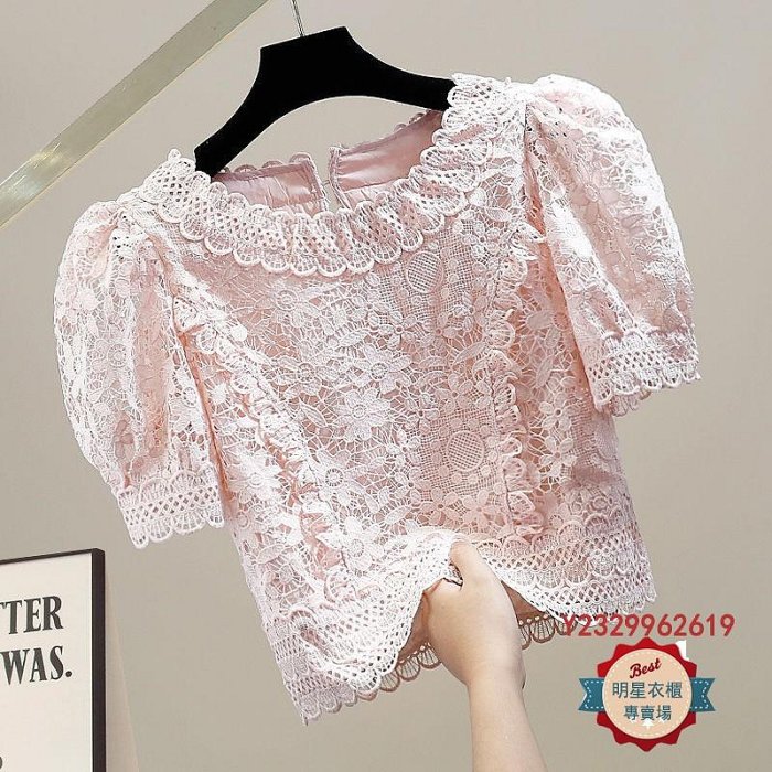 優寶購物《ubao.Tw》特貨品商城,黑貓宅配,取貨付款,明星衣櫃=時尚小雛菊鉤花鏤空水溶蕾絲甜美泡泡袖短袖上衣高端氣質蕾絲襯潮 | Yahoo拍賣
