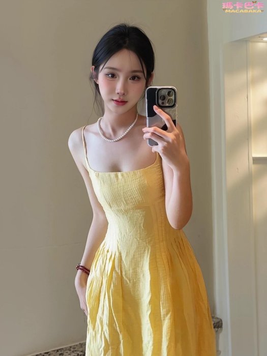 優寶購物《ubao.Tw》特貨品商城,黑貓宅配,取貨付款,瑪卡巴卡💖法式露背性感黃色吊帶連衣裙子女夏季小個子收腰海邊度假仙女長裙 | Yahoo拍賣