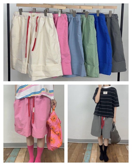 優寶購物《ubao.Tw》特貨品商城,黑貓宅配,取貨付款,OoO三元OoO韓國進口-4N5鬆緊綁帶.後車標籤.褲管反摺.寬鬆.素面.五分褲.Free Size | Yahoo拍賣