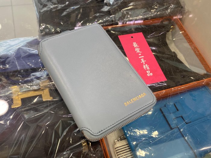 優寶購物《ubao.Tw》特貨品商城,黑貓宅配,取貨付款,☆最愛二手精品☆ BALENCIAGA 淺藍色全皮金色字母LOGO 拉鍊零錢袋中夾短夾皮夾 528927 C4111 | Yahoo拍賣