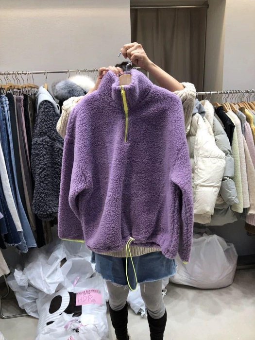 優寶購物《ubao.Tw》特貨品商城,黑貓宅配,取貨付款,新款上架韓國🎃 高領半拉鍊羊羔毛抽繩長袖上衣 | Yahoo拍賣