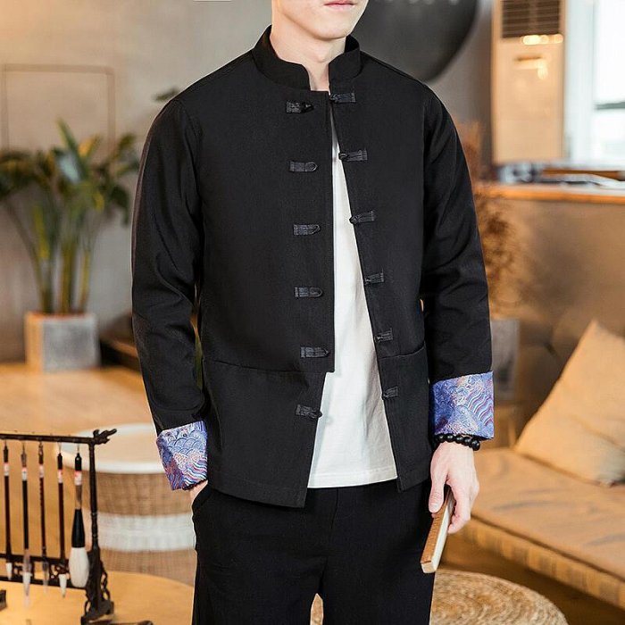 優寶購物《ubao.Tw》特貨品商城,黑貓宅配,取貨付款,【MAN+男裝】春裝新款中式唐裝漢服中國風男裝居士禪服古裝修身外套青年中山裝 | Yahoo拍賣