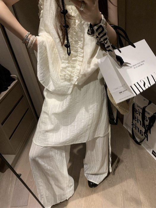 優寶購物《ubao.Tw》特貨品商城,黑貓宅配,取貨付款,💕圓點點荷葉邊吊帶背心+ 屁簾闊腿褲 | Yahoo拍賣