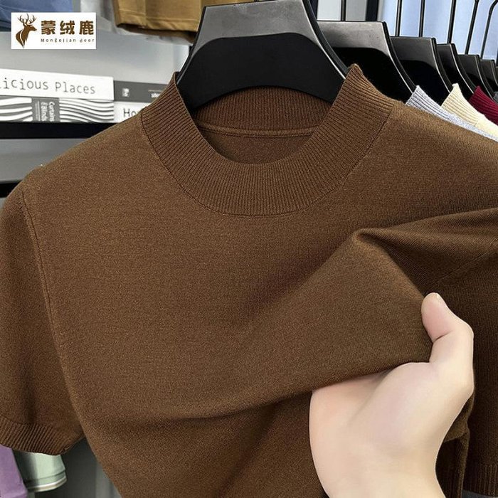 優寶購物《ubao.Tw》特貨品商城,黑貓宅配,取貨付款,2025春秋薄款男士半高領短袖羊毛衫純色中領毛衣半袖針織衫半截袖 | Yahoo拍賣