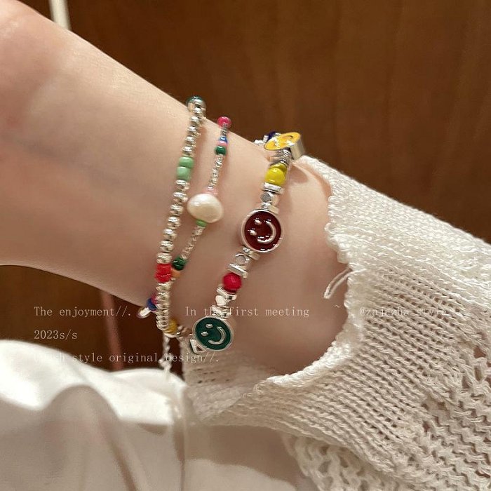 優寶購物《ubao.Tw》特貨品商城,黑貓宅配,取貨付款,My fit guys 推薦 氣質 多巴胺 彩色笑臉 碎銀子 可愛 疊穿 手串 三件套 飾品 手鍊 預購 | Yahoo拍賣