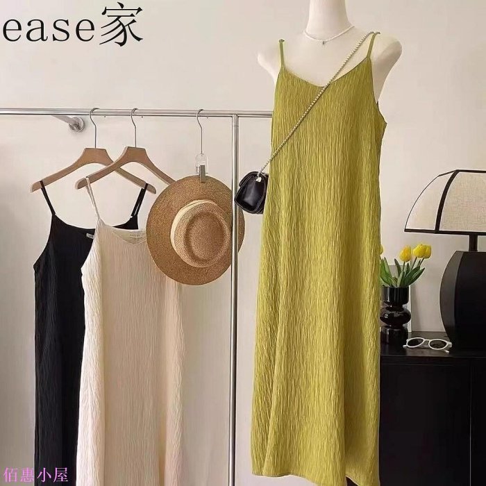 優寶購物《ubao.Tw》特貨品商城,黑貓宅配,取貨付款,夏季小個子寬鬆褶皺吊帶裙 新款高級洋裝 氣質簡約百搭褶皺長裙-佰惠小屋 | Yahoo拍賣