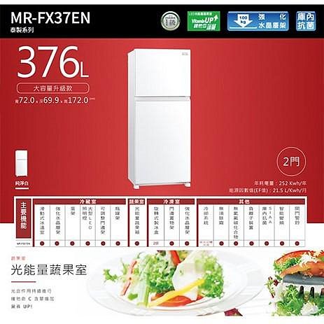 優寶購物《ubao.Tw》特貨品商城,黑貓宅配,取貨付款,【MITSUBISHI三菱】MR-FX37EN-GWH-C 純淨白 376公升 一級能效 泰製變頻雙門冰箱 | Yahoo拍賣