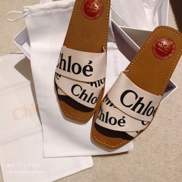 優寶購物《ubao.Tw》特貨品商城,黑貓宅配,取貨付款,真品CHLOE 拖鞋 蔻依羅馬鞋涼拖鞋 印花帆布平底 外穿拖鞋 現貨 | Yahoo拍賣