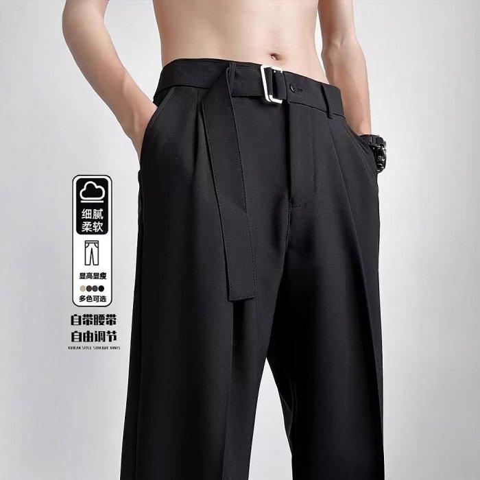 優寶購物《ubao.Tw》特貨品商城,黑貓宅配,取貨付款,自帶腰帶慵懶休閑褲潮牌薄款男生垂墜感冰絲寬松直筒微喇西褲男 | Yahoo拍賣