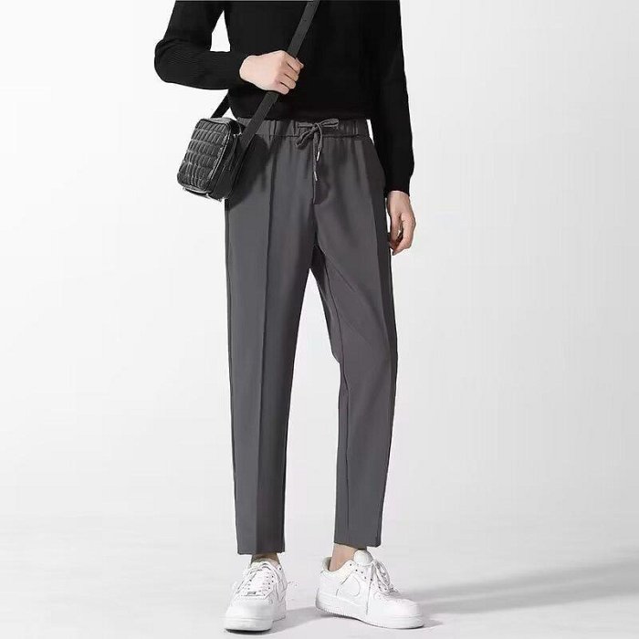 優寶購物《ubao.Tw》特貨品商城,黑貓宅配,取貨付款,INS春夏垂感小直筒寬松休閑褲男簡約9分純色褲子免燙潮流系帶西褲 | Yahoo拍賣