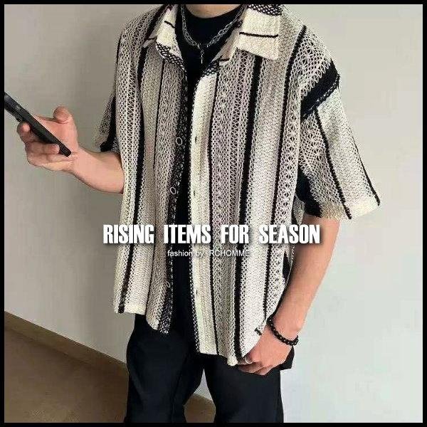 優寶購物《ubao.Tw》特貨品商城,黑貓宅配,取貨付款,。R.C。UF.韓著概念限定!! 不對稱相間撞色直條紋.造型扣.網狀緹花針織短袖襯衫.GD.BTS婁峻碩!!~促銷580 | Yahoo拍賣