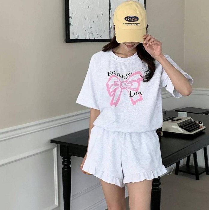 優寶購物《ubao.Tw》特貨品商城,黑貓宅配,取貨付款,Forever Kids 正韓 一套!蝴蝶結印花上衣+荷葉邊短褲 套裝【A68296】韓國代購 | Yahoo拍賣