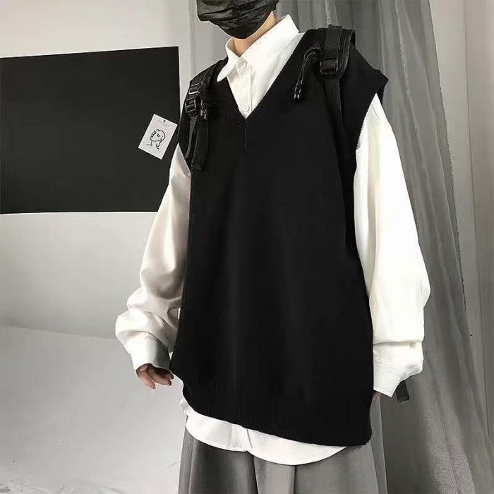 優寶購物《ubao.Tw》特貨品商城,黑貓宅配,取貨付款,2022時尚休閒秋季港風帥氣男士毛衣日系寬鬆簡約素色V領針織背心(滿599元免運) | Yahoo拍賣