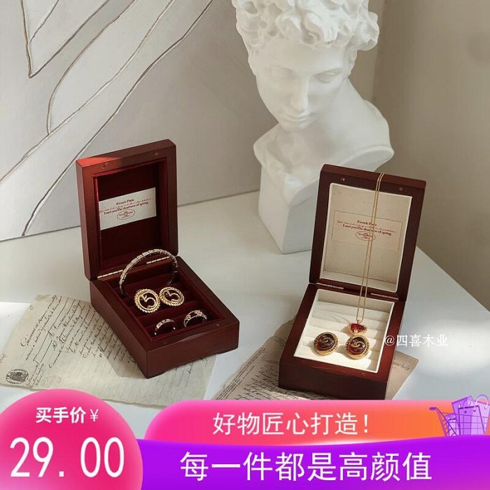 優寶購物《ubao.Tw》特貨品商城,黑貓宅配,取貨付款,【熱品】ins木質中古風戒指耳針耳環首飾盒飾品盒收納禮物婚慶隨身復古 | Yahoo拍賣
