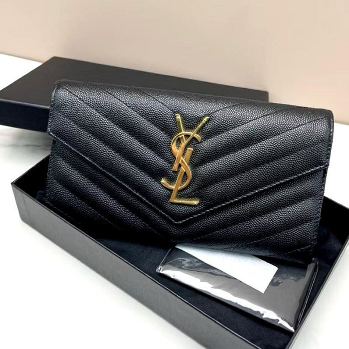 優寶購物《ubao.Tw》特貨品商城,黑貓宅配,取貨付款,YSL 魚子醬 信封式長夾 荔枝 黑金 | Yahoo拍賣