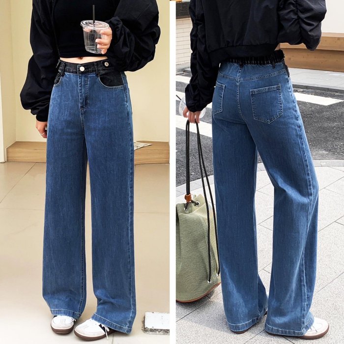 優寶購物《ubao.Tw》特貨品商城,黑貓宅配,取貨付款,現貨《XL~3L》版型極優8290.復古釦式拉鍊撞色彈性牛仔褲寬褲落地褲/大尺碼寬褲/大尺碼長褲【時尚Tina】鑽石比例 | Yahoo拍賣