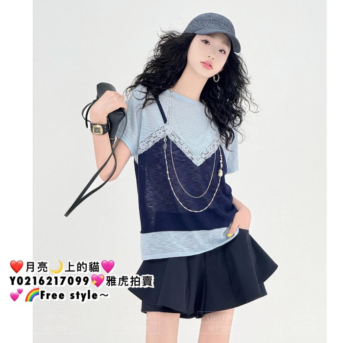 優寶購物《ubao.Tw》特貨品商城,黑貓宅配,取貨付款,❤月亮上の貓❤絕美時尚出街~上身超美や好品質~夏百搭の高級感拼色設計寬鬆舒適顯瘦遮肉撞色假兩件短袖T卹 超好看小眾設計感顯瘦別緻漂亮上衣 | Yahoo拍賣