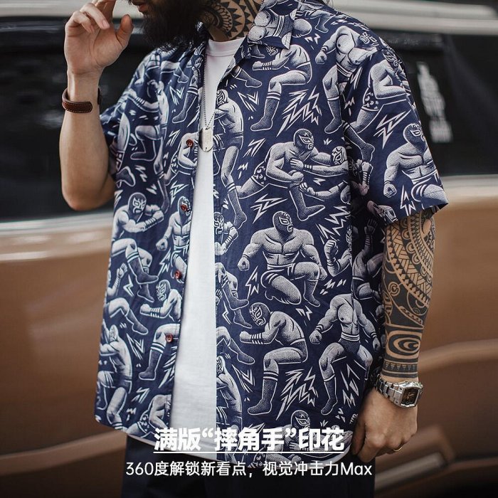優寶購物《ubao.Tw》特貨品商城,黑貓宅配,取貨付款,馬登工裝 美式復古滿印花古巴領襯衫寬鬆夏威夷短袖襯衫外套男夏季 | Yahoo拍賣