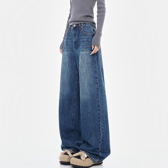 優寶購物《ubao.Tw》特貨品商城,黑貓宅配,取貨付款,新款KEN STUDIO春夏新款復古水洗闊腿牛仔褲女高腰直筒寬松顯瘦拖地褲 | Yahoo拍賣