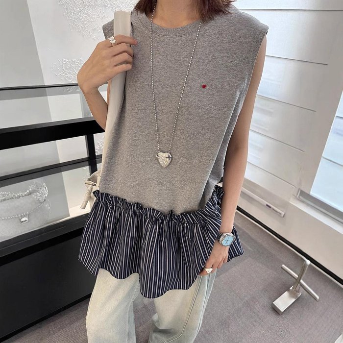 優寶購物《ubao.Tw》特貨品商城,黑貓宅配,取貨付款,黎諾夏季新款時尚條紋拼接裙式背心女2025寬松顯瘦無袖T恤上衣潮 | Yahoo拍賣