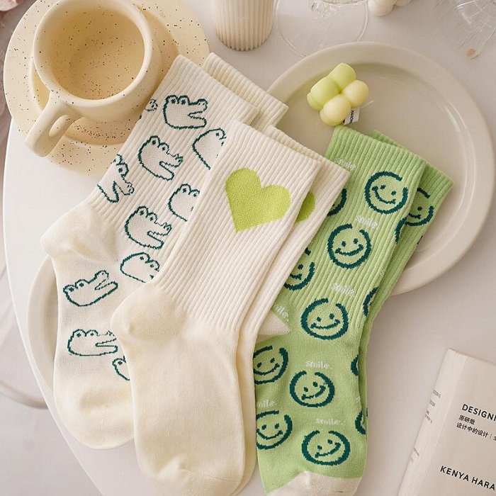 優寶購物《ubao.Tw》特貨品商城,黑貓宅配,取貨付款,【熱品】綠色一顆心~超火襪子女春秋高腰原創ins潮長襪純棉中筒運動襪 | Yahoo拍賣