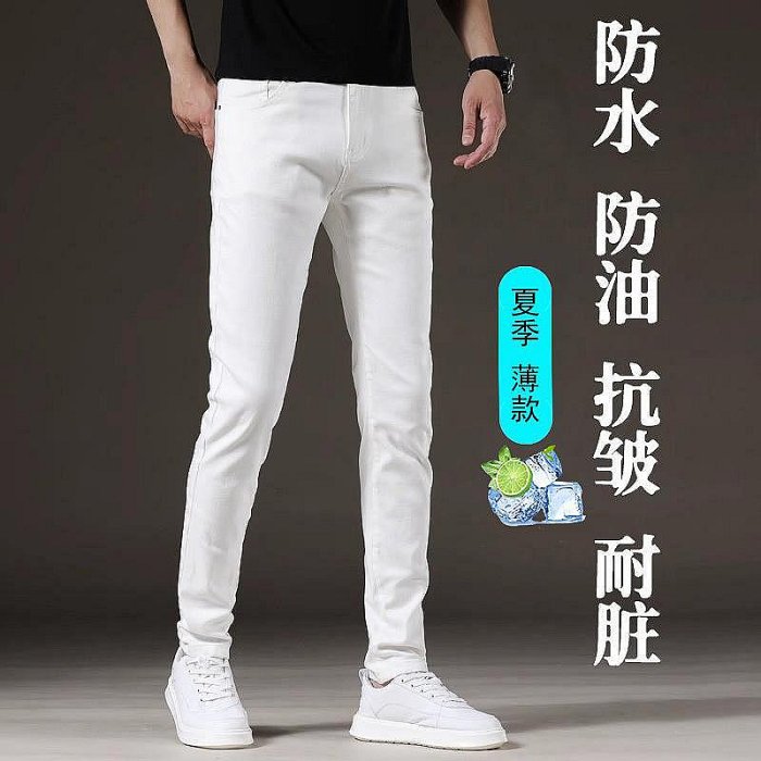 優寶購物《ubao.Tw》特貨品商城,黑貓宅配,取貨付款,香港高端三防白色牛仔褲男士夏季薄款修身小腳彈力商務休閑長褲子D | Yahoo拍賣