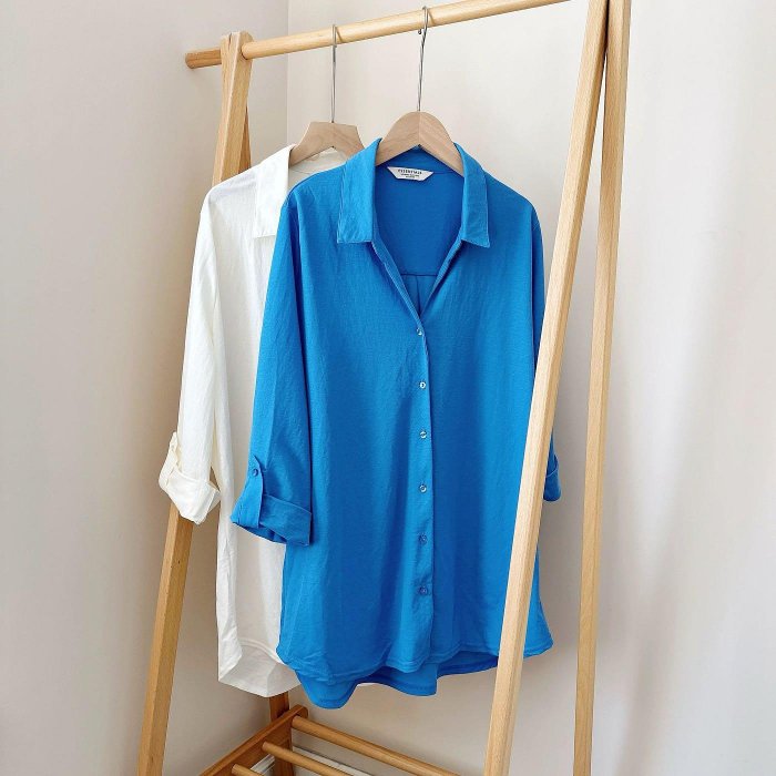 優寶購物《ubao.Tw》特貨品商城,黑貓宅配,取貨付款,質感七分袖中長款襯衫👕 藍現貨 | Yahoo拍賣