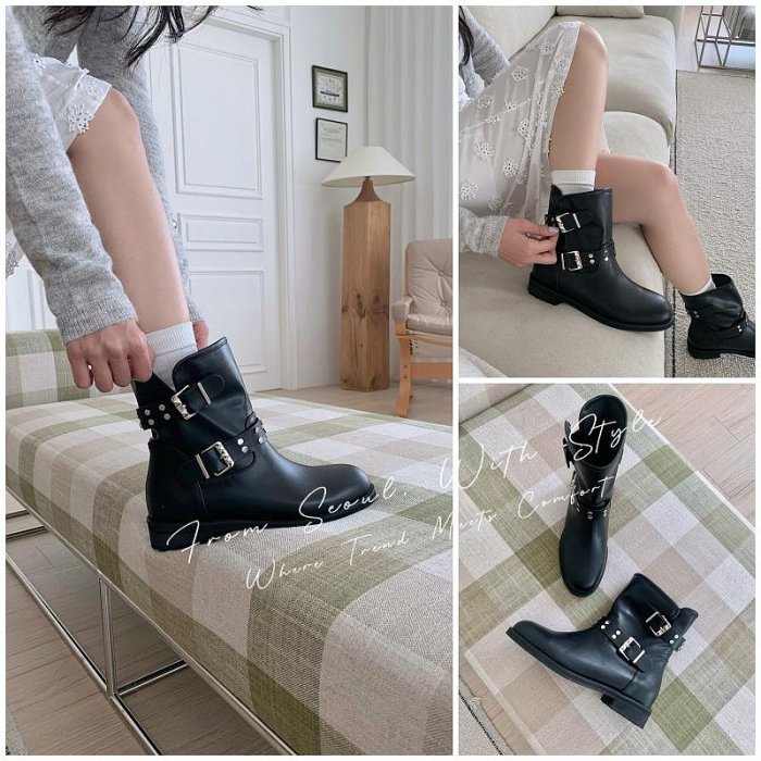 優寶購物《ubao.Tw》特貨品商城,黑貓宅配,取貨付款,韓國空運🇰🇷【率性日常】🖤 雙皮帶短靴+騎士風扣環 👢 百搭秋冬必收 #3077 | Yahoo拍賣