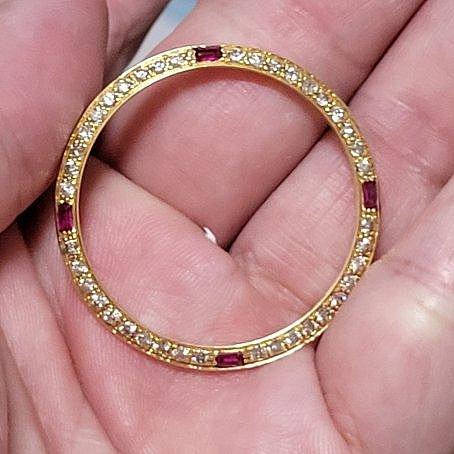 優寶購物《ubao.Tw》特貨品商城,黑貓宅配,取貨付款,【一米時光】(售出)勞力士☆12K紅寶鑽石圈~代用18238.18038.16233.金重1.43錢(附含金量檢測照片)鑽圈已重新電鍍 | Yahoo拍賣