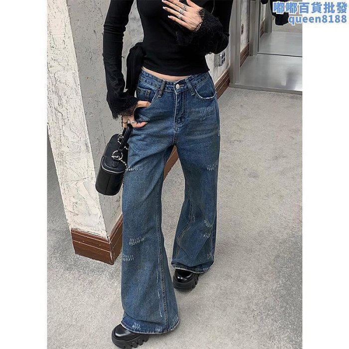 優寶購物《ubao.Tw》特貨品商城,黑貓宅配,取貨付款,【可開 】peachaway 一眼傾心 系女 牛仔褲微喇闊腿寬鬆顯瘦做舊長褲 | Yahoo拍賣