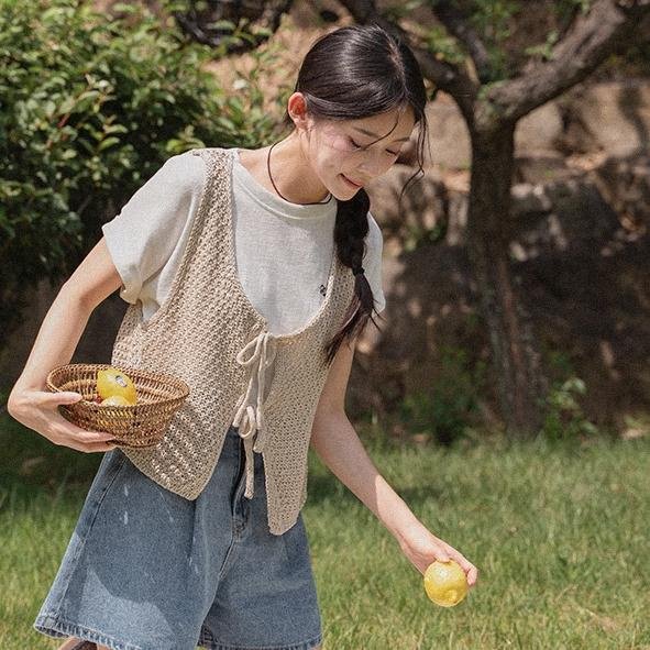 優寶購物《ubao.Tw》特貨品商城,黑貓宅配,取貨付款,Bellee 正韓 正反兩穿蝴蝶結綁帶大圓領針織背心 (5色) 【0724-25】 | Yahoo拍賣