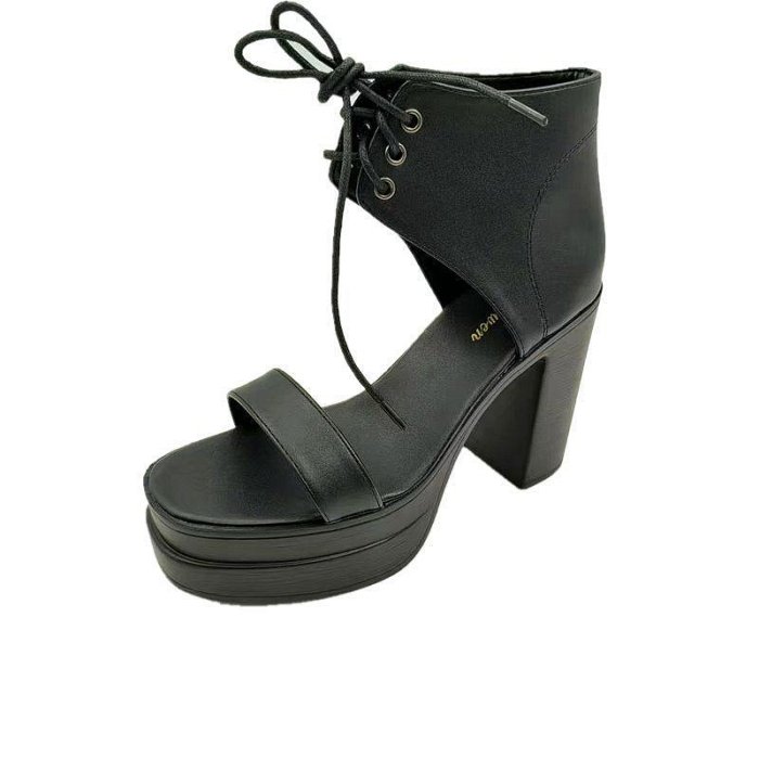 優寶購物《ubao.Tw》特貨品商城,黑貓宅配,取貨付款,新上架2025款复古系带罗马凉鞋夏超高跟防水台轻便松糕底一字面粗跟性感欧美风 | Yahoo拍賣