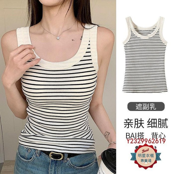優寶購物《ubao.Tw》特貨品商城,黑貓宅配,取貨付款,明星衣櫃=條紋吊帶內搭修身顯瘦t桖親膚百搭無袖夏季外穿棉背心潮舒適 | Yahoo拍賣
