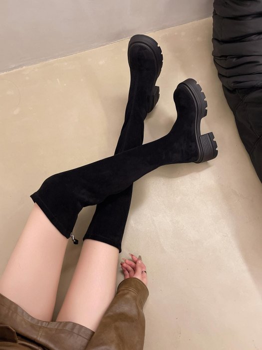 優寶購物《ubao.Tw》特貨品商城,黑貓宅配,取貨付款,新上架2025款小個子厚底增高長筒靴女秋冬新款復古絨面過膝高筒彈力瘦瘦靴 | Yahoo拍賣